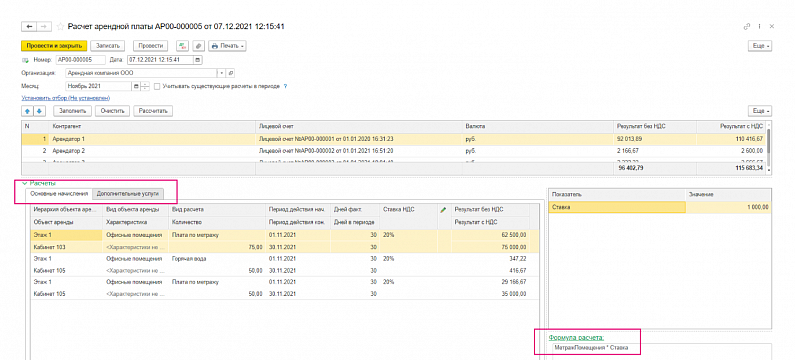 - возможность задать различный порядок расчета для каждого объекта в рамках одного договора аренды;