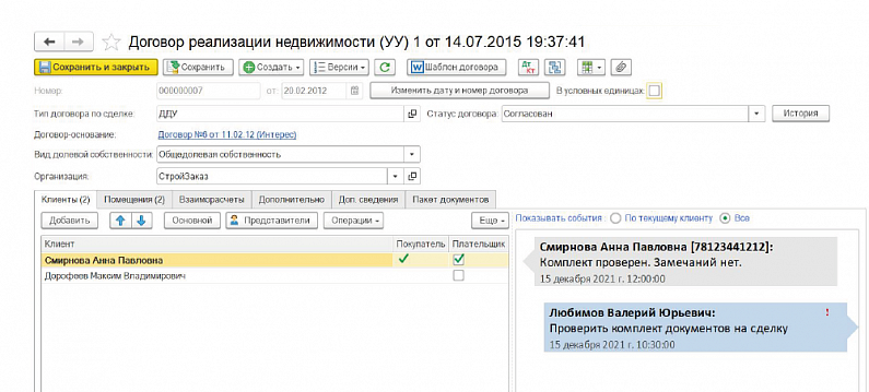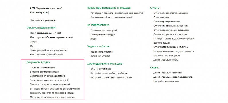 Решение предназначено для управления сделками по продаже недвижимости и взаимоотношениями с клиентами.