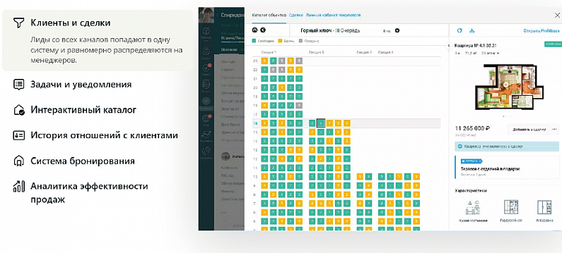 • Быстрый подбор объектов недвижимости под потребности покупателей