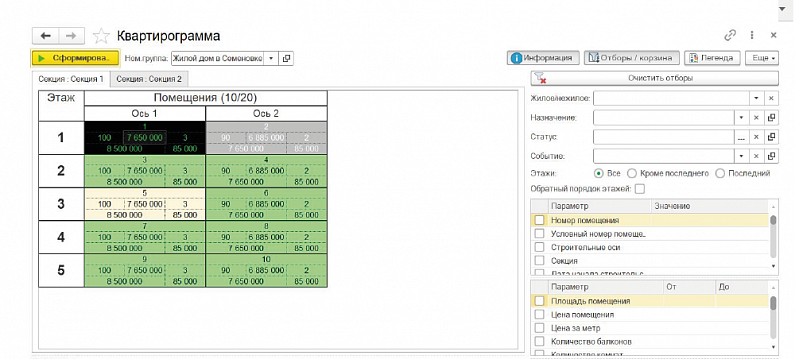 • Отражение актуальных цен на квартиры.