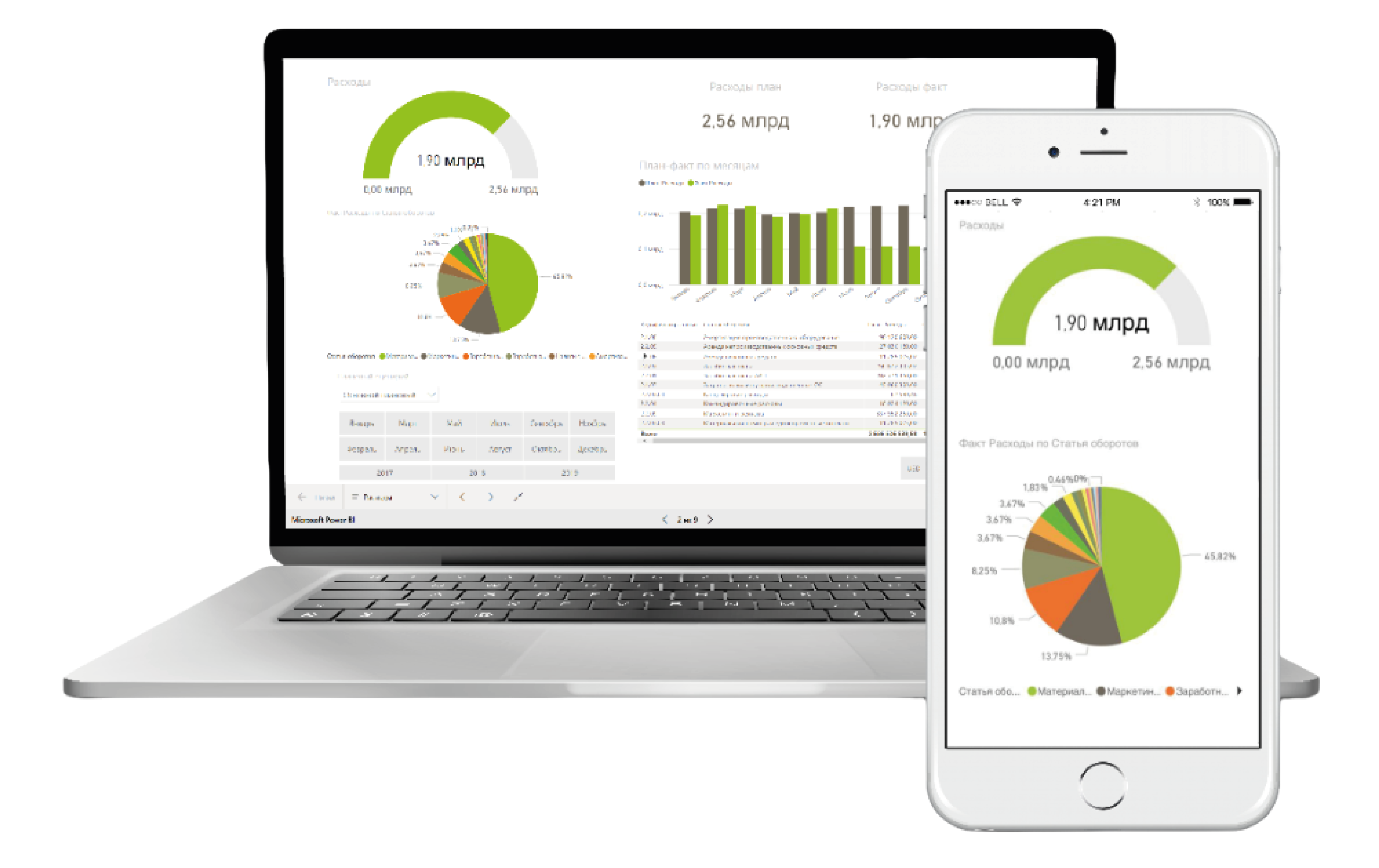 - Возможность работать с данными управленческой системы локально с рабочего стола, с браузера или с мобильного устройства